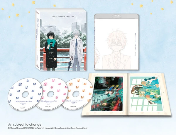 March Comes In like a Lion volume 2 contains episodes 12-22 of the anime directed by Kenjirō Okada, plus a deluxe booklet, rigid box with package illustrated by Nobuhiro Sugiyama.*