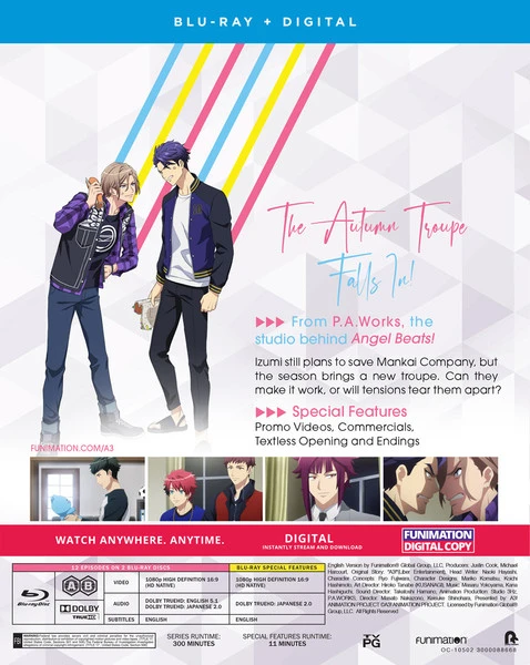 A3! Season Autumn & Winter contains episodes 13-24 of the anime directed by Masayuki Sakoi.
