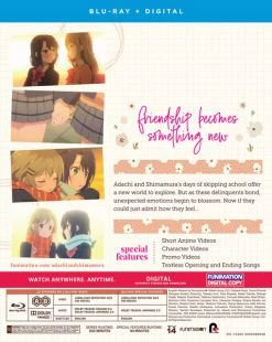 Adachi and Shimamura contains episodes 1-12 of the anime directed by Satoshi Kuwabara.