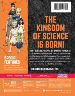 Special Features: Episodes 2, 10, and 24 Commentary, Textless Opening Songs (Ver. 1 and 2) and Closing Songs (Ver. 1 and 2), Dr. STONE: The Science Guys