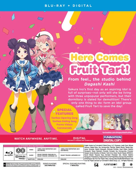 Dropout Idol Fruit Tart contains episodes 1-12 of the anime directed by Keiichiro Kawaguchi.