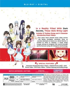 Special Features: Character Introduction Music Videos, Gekidol Promo Video, OVA Promo Video, OVA Music Videos, Textless Opening and Ending Songs.