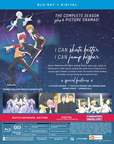 Skate-Leading Stars contains episodes 1-12 of the anime directed by Goro Taniguchi.
