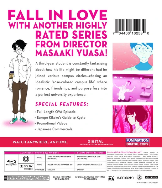 The Tatami Galaxy Classics Blu-ray contains episodes 1-11 of the anime, plus the OVA, directed by Masaaki Yuasa.