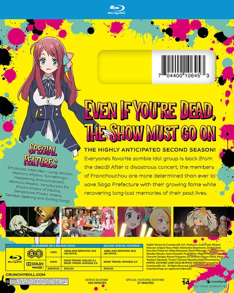 ZOMBIE LAND SAGA REVENGE contains episodes 1-12 of the second season of the anime and is directed by Munehisa Sakai and includes 3 art cards (while supplies last).