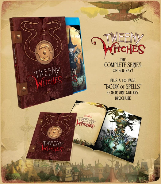Tweeny Witches: The Complete Book of Spells contains episodes 1-26 of the anime directed by Yoshiharu Ashino and includes a 10-page “Book of Spells” Color Art Gallery Brochure.