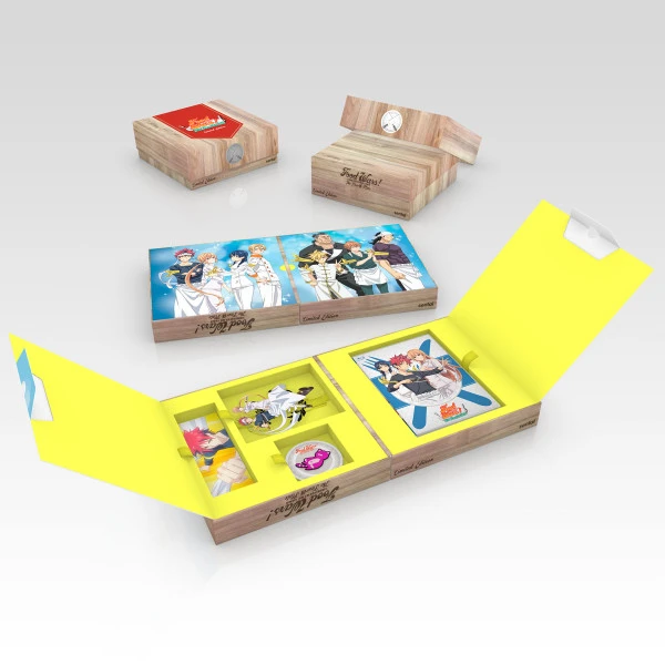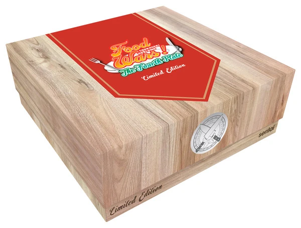 Food Wars! The Fourth Plate Premium Edition Box Set contains episodes 1-12 of the anime directed by Yoshitomo Yonetani all housed in a Custom Bento Box which also includes an Acrylic Stand, a Metal Pin and Pin Card, and a 3D Lenticular Bookmark.